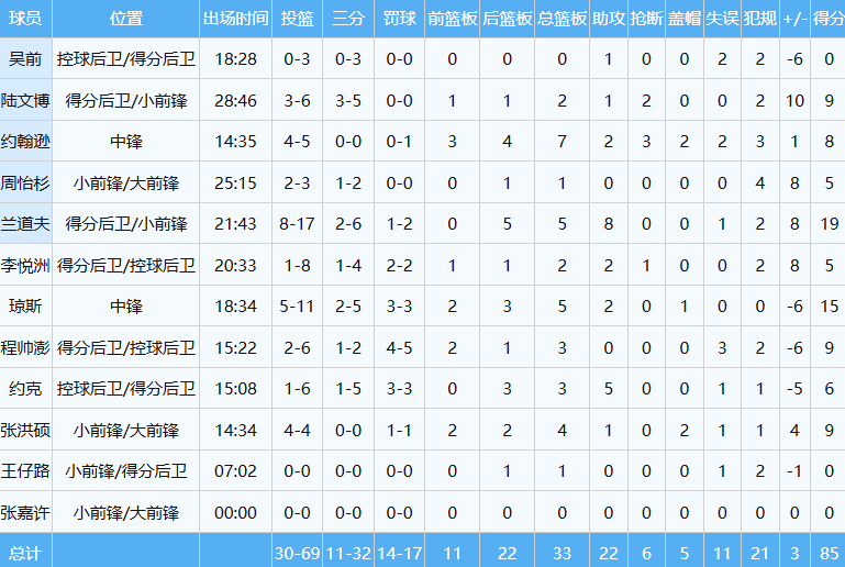 浙江队在主场,85-82击败上海队,结束三连败的同时,终结对手的四连胜。